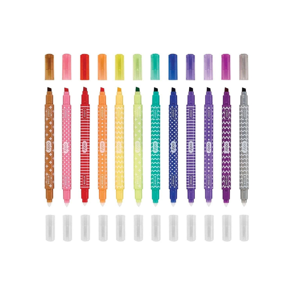 • Double Sided Markers. One Side Colors and the Other Erases