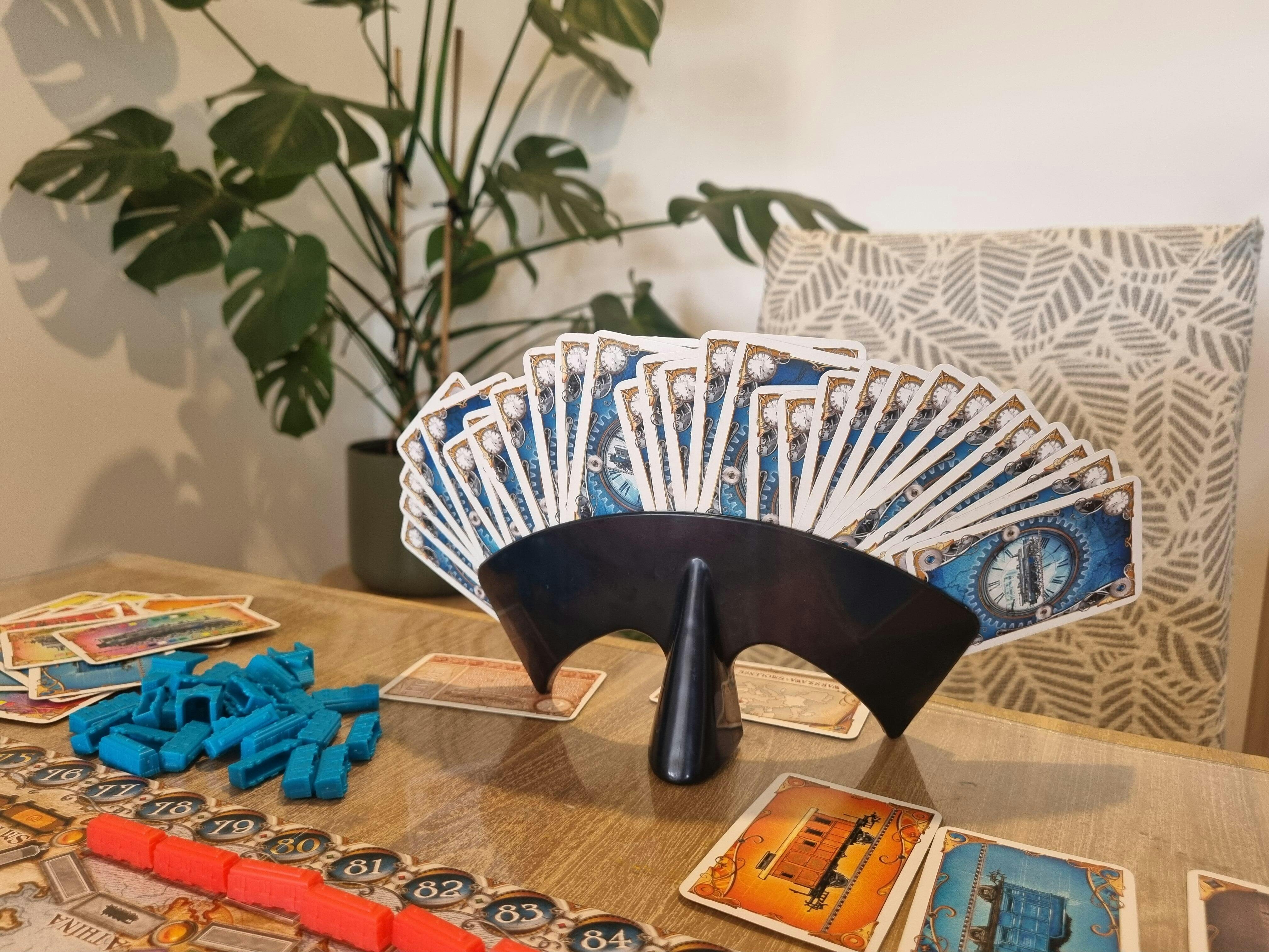 My kids love this card holder! So handy for games where they need to hold cards in their hand as well as do stuff on a board as it keeps them fanned out and visible while doing the other things.