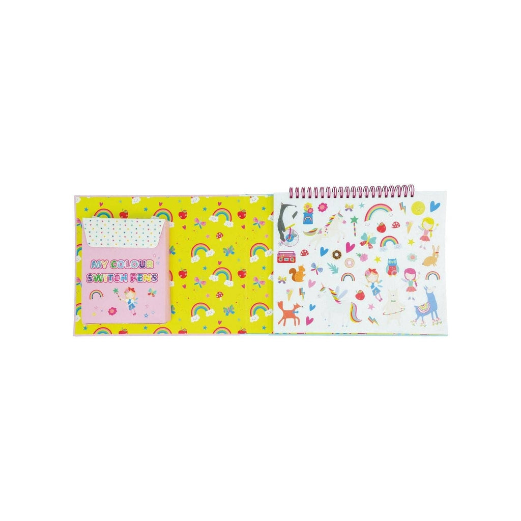 Each pad contains 10 doodle pages, 5 colour-in pages, 6 colour switch pens, 1 magic pen, 5 lined pages for writing and 2 sticker pages. Colour Switch Magic is unique as not only do you get the super fun colour changing pens and mega magic white pen - you also get a ring bound book packed full of fun!