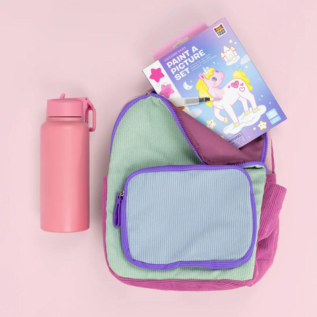 A wonderful intro to painting for little artists, this unique Paint-a-Picture set features 16x pages of beautiful unicorns in a pastel dreamland design. Each illustrated design card has its own built-in watercolour paint palette, with six vibrant colours activated by the water brush. The pull-out, high quality watercolour card is perfect for displaying and preserving masterpieces. Magnetic closure on the set allows for neat pack-up at the end of the day.