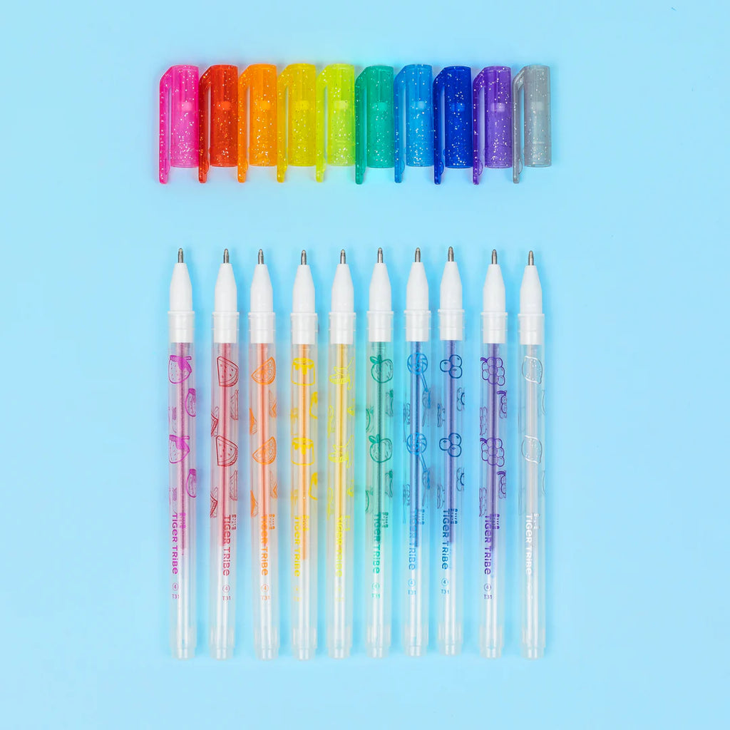 Kids will love this sweetly scented set of ten, shimmery gel pens!